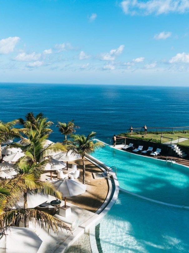 It features a separate bedroom and living area, as well as a private balcony with stunning views of the city. The suite also includes a marble bathroom with a Jacuzzi tub, and a fully–equipped kitchen.